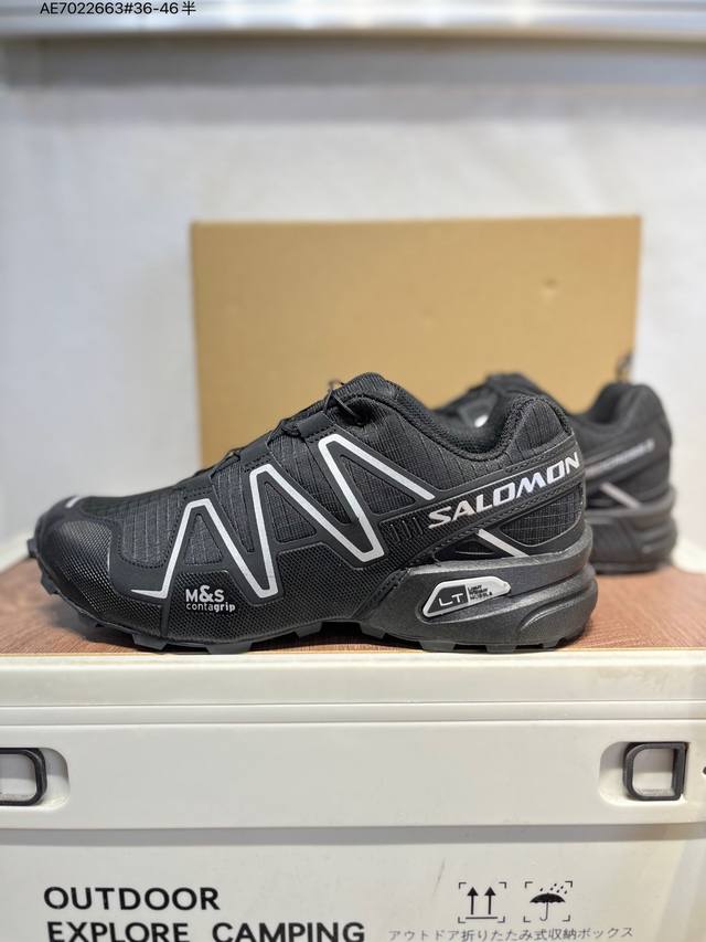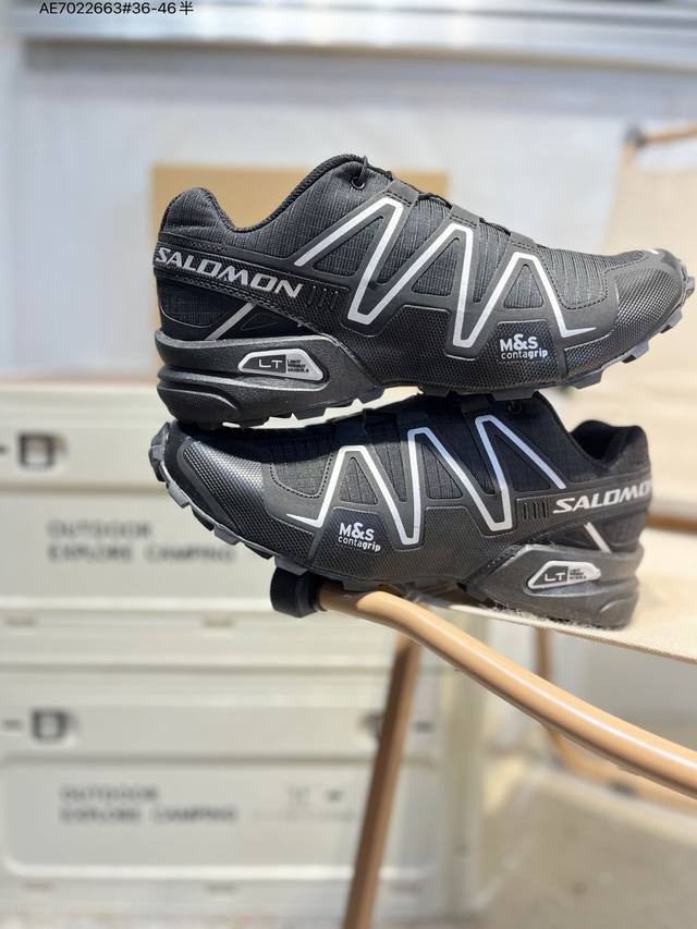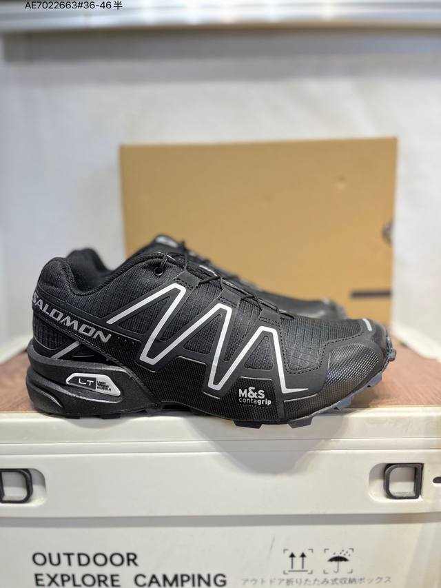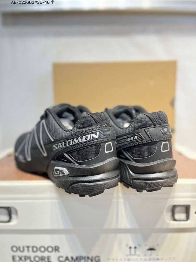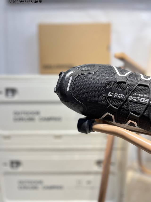 Salomon Speedcross 3萨洛蒙户外越野跑鞋 #鞋面采用Sensifit贴合技术 全方位贴合包裹脚型 鞋跟部鞋底牵引设计 提供强大的抓地性能 更适应野外崎岖不平的道路 其3D Advanced Chassis底盘 材料轻量大化 钉齿设计更具稳定性、防护性 鞋底易磨损区运用Contagrip高耐磨材料 应对城市硬质路面长距离跑考验475880 Ae7022663#36-46半
