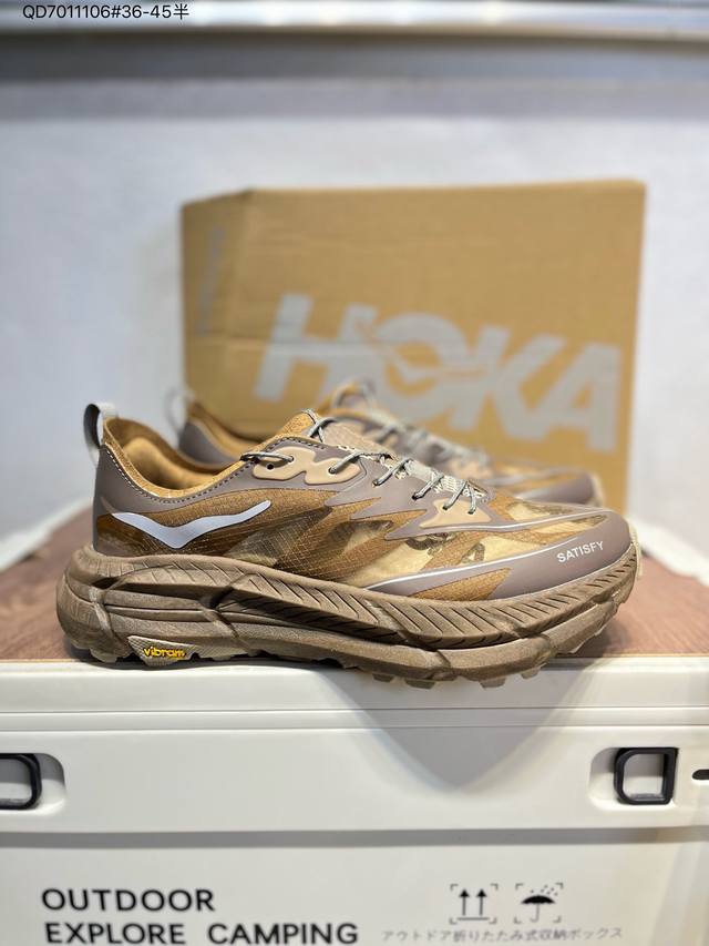 / Satisfy X Hoka One One Mafate Speed 4 Lite Low 玛法特4系列低帮厚底轻量户外越野运动慢跑鞋货号:1157050 Q