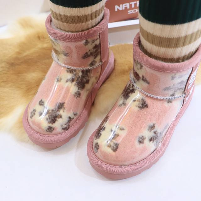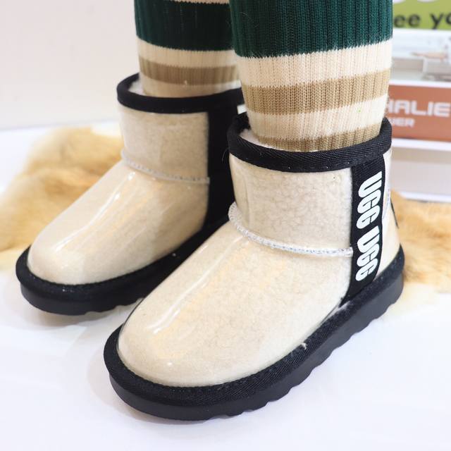 放 Ugg新款芙卡拉羊毛绒儿童雪地靴 鹿绒皮材质羊毛绒内里,保暖又软萌, 采用彩色绑带设计 橡胶防滑底...
