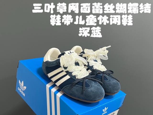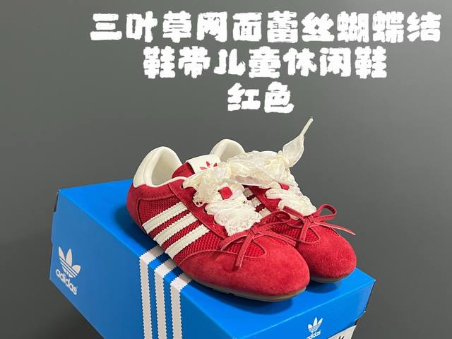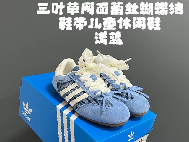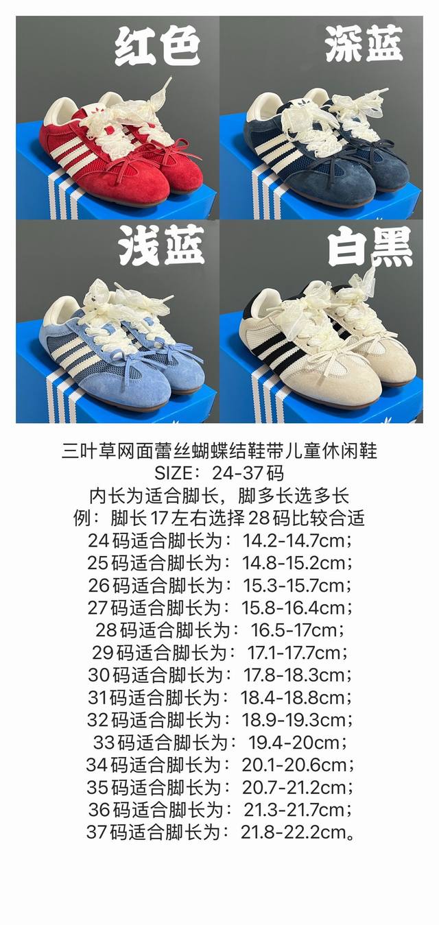 / 代理价 三叶草网面蕾丝蝴蝶结鞋带儿童休闲鞋 Size:24-37码 经典三叶草系列 网面设计,透气舒适 蕾丝蝴蝶结鞋带设计,少女心爆棚 橡胶耐磨防滑大底,脚感不