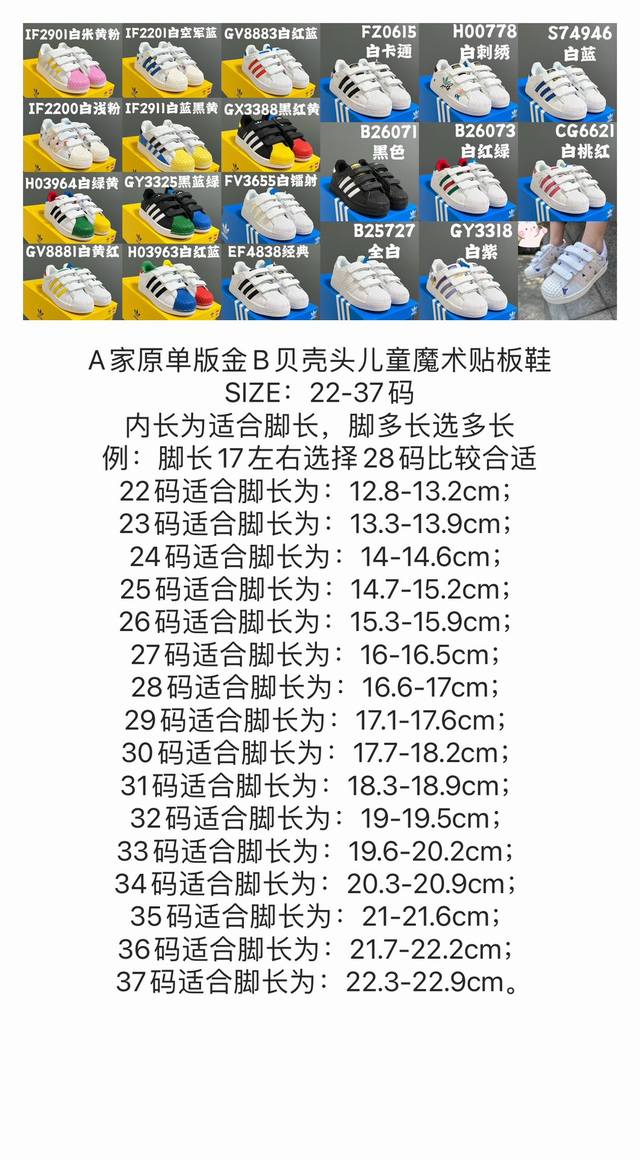 原单版金B贝壳头儿童魔术贴板鞋 Size:22-37码 原单版的细节版型设计都超赞 金标系列绝对是最百搭的单品 作为入门级板鞋,人手必备
