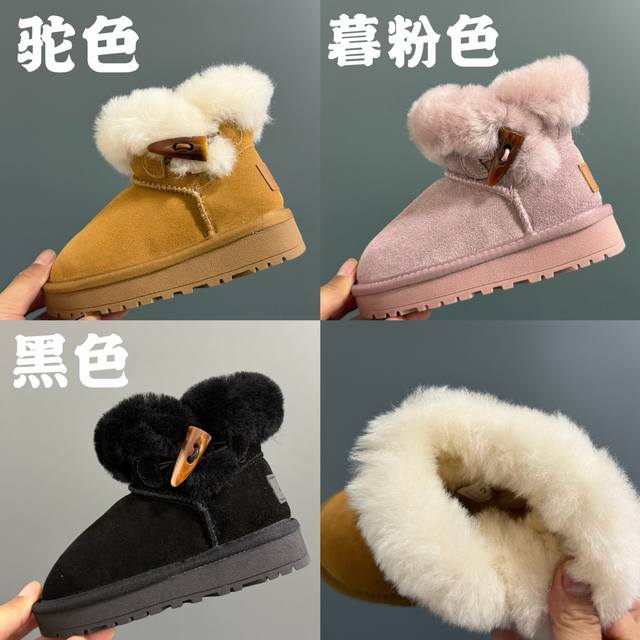 / 放 Ugg新款牛角扣儿童高帮雪地靴 Size:26-35码 经典Ugg牛角扣款 高帮款式,,加绒加厚内里,保暖防风 精致牛角扣设计,质感满满