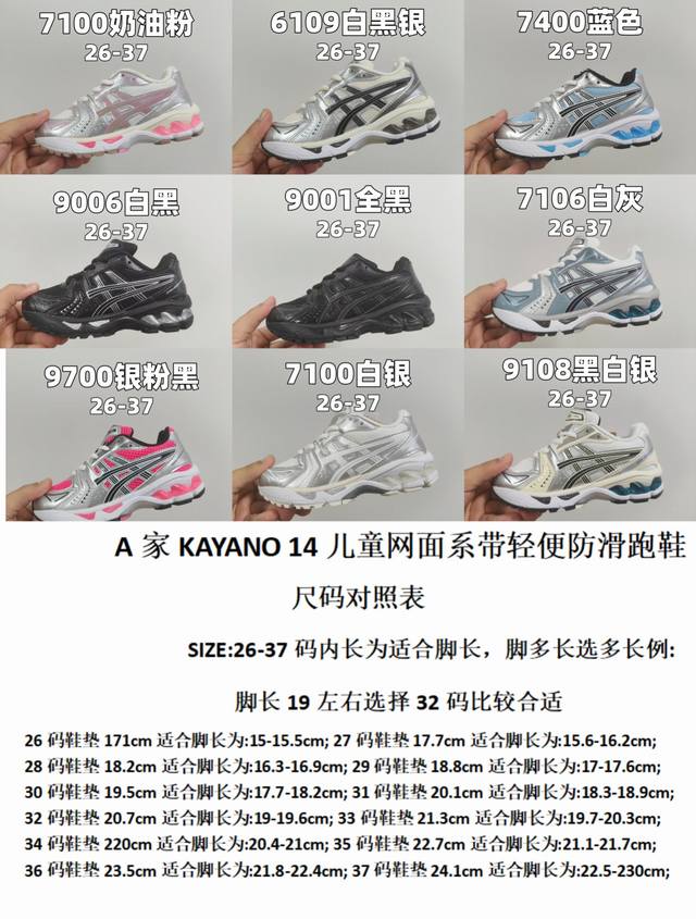 / 新款出货放店 亚瑟士K14鞋带款童鞋26-37 缓震跑步鞋Gel胶柔韧舒适缓冲,橡胶轻便组合防滑大底,松紧带设计,海玻璃鞋垫超舒适潮范儿十足