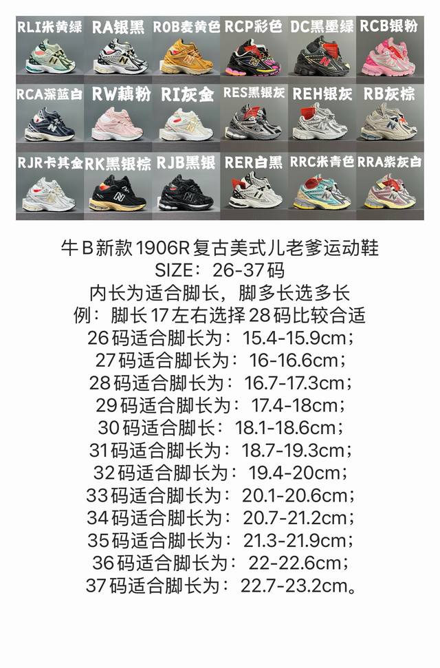 牛B新款1906R复古美式儿老爹运动鞋 Size:26-37码 新款美式复古跑鞋风 网面拼接,透气舒适 线条流畅自然,时髦度 开学力荐单品
