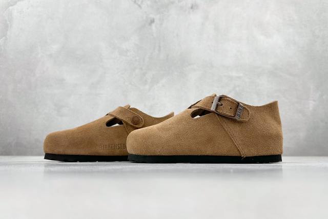 / 160 Ra 童鞋 博肯Birkenstock 棕色 勃肯全包系列 勃肯伦敦系列低帮牛皮绒面革平底复古软木休闲鞋!!!