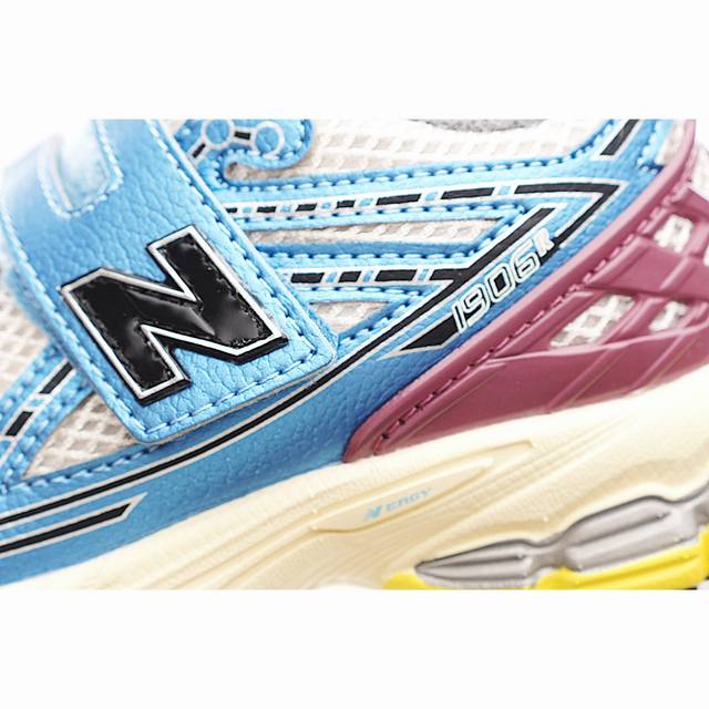 Nb 6 魔术贴儿童跑步鞋 立体双层织面搭配镂空支撑带复古未来感淋漓彰显,亦可搭配亲子款全家玩转复古千禧风。中底采用Ab科技与Ny避震系统,缓震回弹性能更出色。