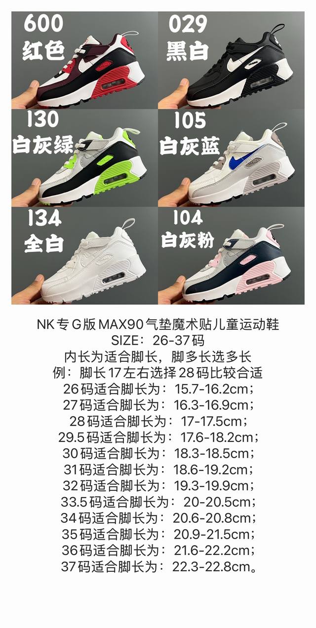 Nk专G版Max90气垫魔术贴儿童运动鞋 Size:26-37码 秋冬Max90气垫 优质皮料拼接,质感细腻又柔软 真实气垫填充,质感满满 魔术贴设计,穿脱方便