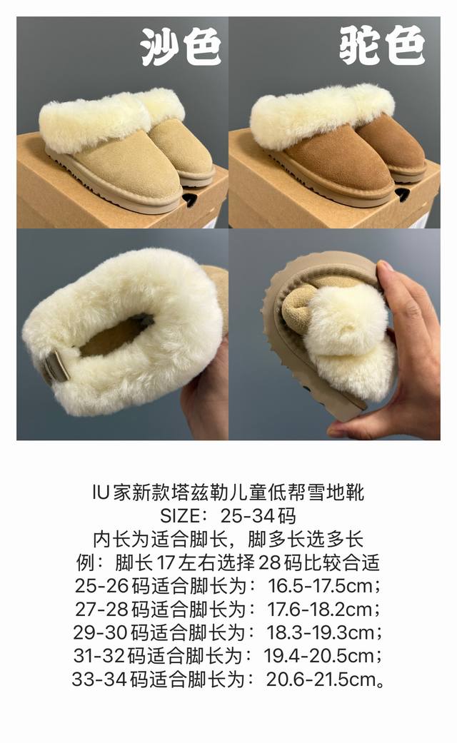 U家新款塔兹勒儿童低帮雪地靴 DDD Size:25-34码 DDD 羊皮毛一体系列 DDD 毛绒绒软软绵绵的 DDD 家居户外都超好看 DDD