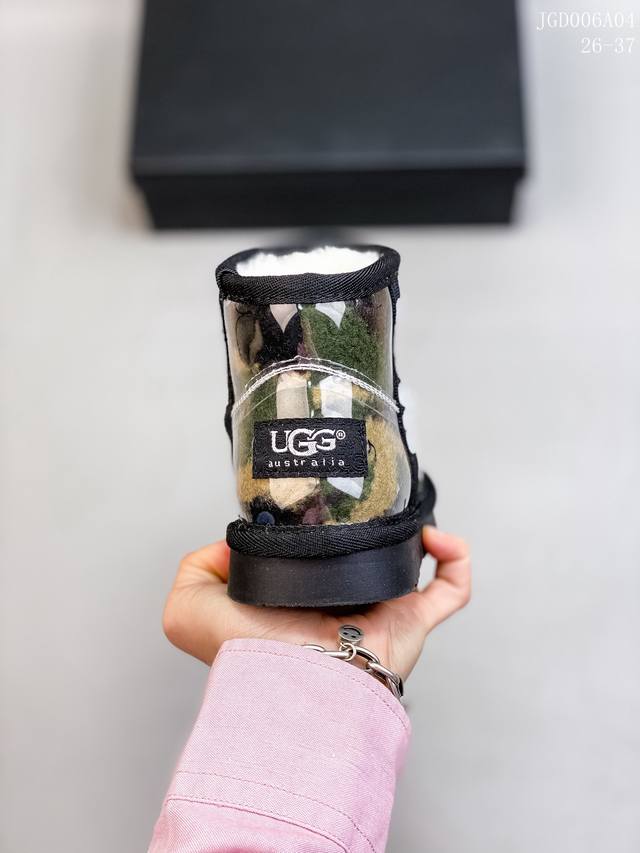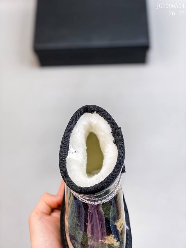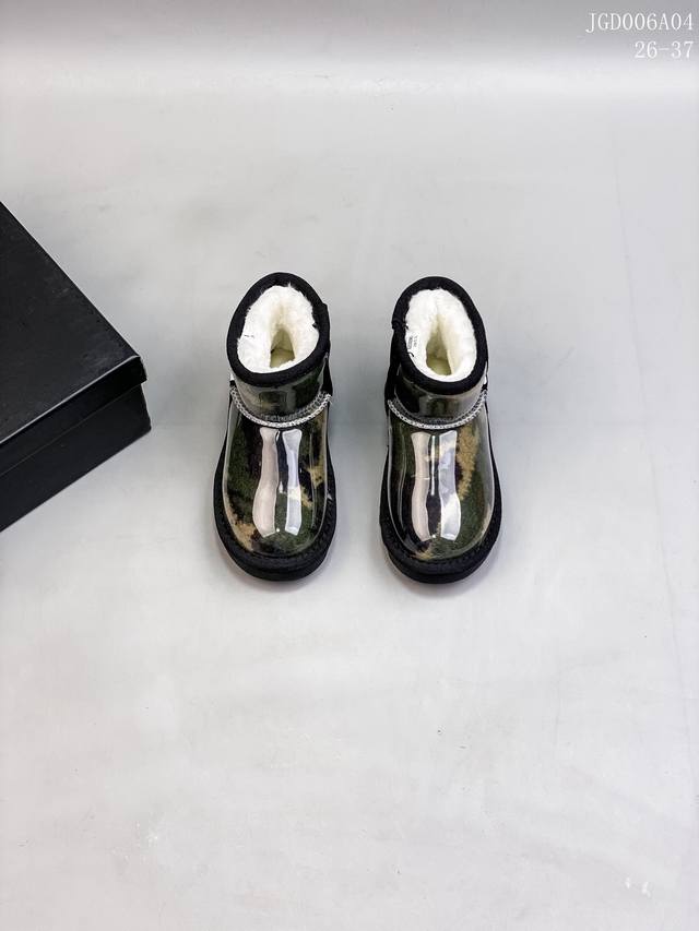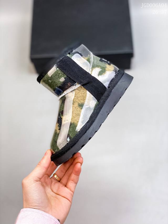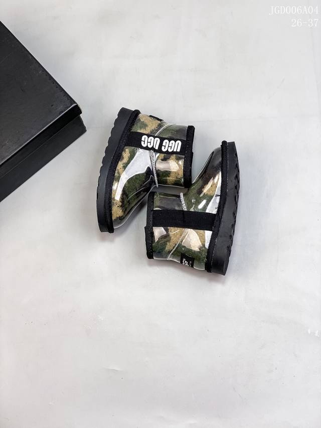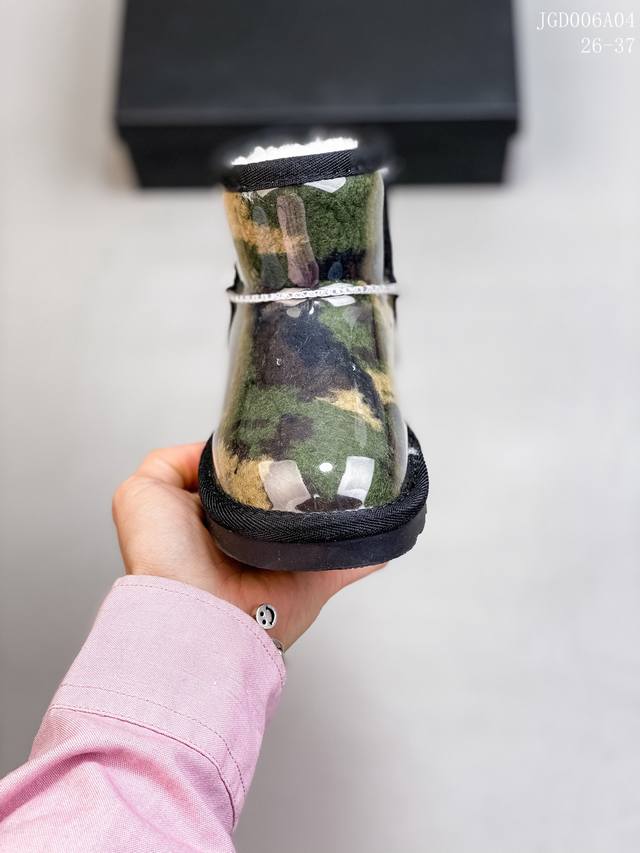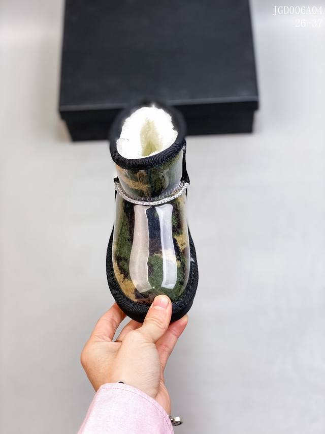 Ugg 爆版周冬雨同款果冻鞋明星同款秋冬新款加绒潮流棉鞋糖果透明儿童雪地靴短筒防水防滑保暖厚底一脚蹬童鞋亲了鞋 材料:进口莱卡面+织带+内里羊羔毛+内里混纺羊毛+橡胶防滑底 颜色:米色,奶茶色,粉色,黑色,豹纹色 号码:26-37码