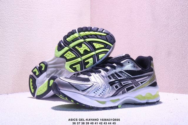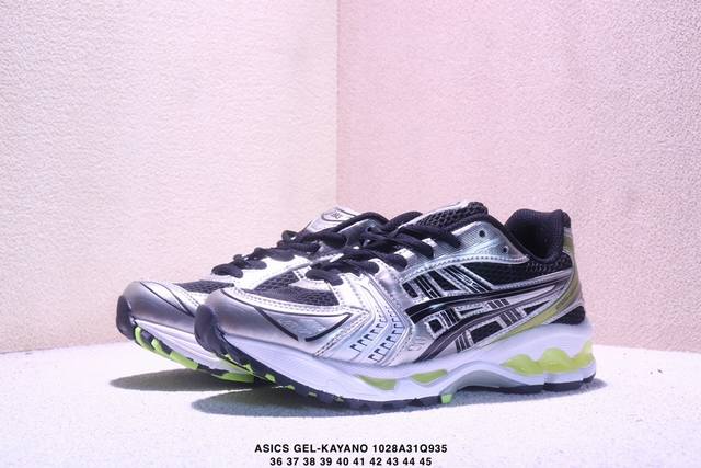 公司级带半码! 采用环保太空合成革配合透气网眼布鞋面材质#中底3D可视Gel缓震胶效果#升级Eva全新缓震中底部位科技组合耐磨橡胶外底片13年前经典首度回归,复刻魅力难挡!日本专业跑鞋品牌 亚瑟士 Asics Gel Kayano 14 系列轻量缓震休闲运动跑步鞋 Asics Gel-Kayano 14 于2008 年在万众期待中横空出世,设计师 Hidenori Yamashita 以 Flash 一词为灵感,创造出未来感金属色鞋面,改造升级内在性能,由内而外全面革新,为 Gel-Kayano 家族传承