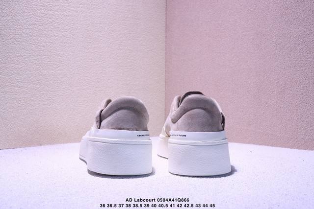 公司级Ad Labcourt 百搭休闲轻松舒适耐磨透气低帮板鞋 If1711 Fog平替单品 鞋面使用了绒毛麂皮 鞋面和鞋底连接处使用了包边处理 看起来更加精致有型 内里也使用了光滑的优质皮革 鞋垫上的Logo彰显品牌身份 鞋子后脚跟处的英文 Endineered For The Style Of Future译为 为未来的风格而设计 尺码:36 36.5 37 38 38.5 39 40 40.5 41 42 42.5 43 44 44.5 45
