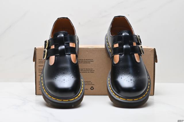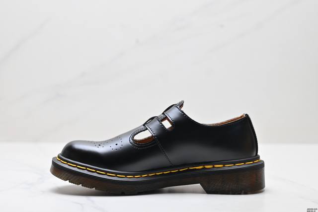 / 公司级Dr.Martens马丁 Core polley T 头层牛皮 T字带 休闲皮鞋 鞋面采用光滑的轮廓 同时保留了传统轮廓 它有一个银色的搭扣 并以马丁博士