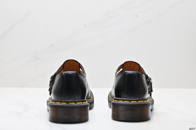 公司级Dr.Martens马丁 Core polley T 头层牛皮 T字带 休闲皮鞋 鞋面采用光滑的轮廓 同时保留了传统轮廓 它有一个银色的搭扣 并以马丁博士