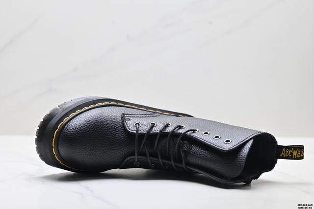 公司级Dr.Martens马汀博士 Martens 1046 Smooth Leather platform系列松糕高帮英伦骑士朋克复古机车厚底粗跟 马丁靴 DDD 采用硬质牛培开边珠牛培皮打造鞋面 厚实耐磨pvc原厂透明水晶橡胶大底 原版一致空胶工艺 真实大底拉帮线锁底 DDD 货号:R11822202 DDD 尺码:35-45 DDD Id:Jfd474-Aje DDD