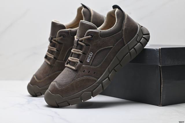 公司级Ecco男鞋户外运动休闲皮鞋真皮防水防滑登山鞋厚底耐磨工装鞋 尺码:39-44 Ld:Zed538-Re D