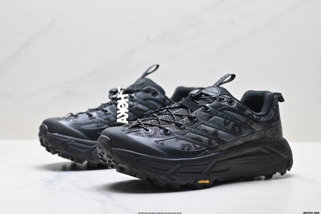 公司级Hoka Mafate Three 2玛法特 超轻厚底轻量山地跑步鞋 滚动平衡科技和适度的脚后跟倾斜角度 可平稳步伐体验和柔软的脚感 鞋面采用了皮革相拼