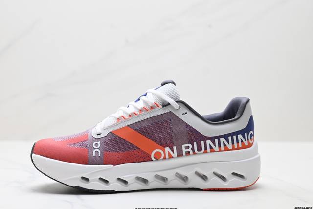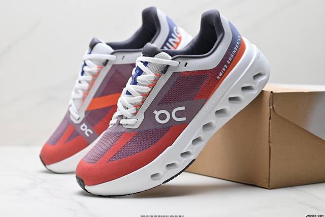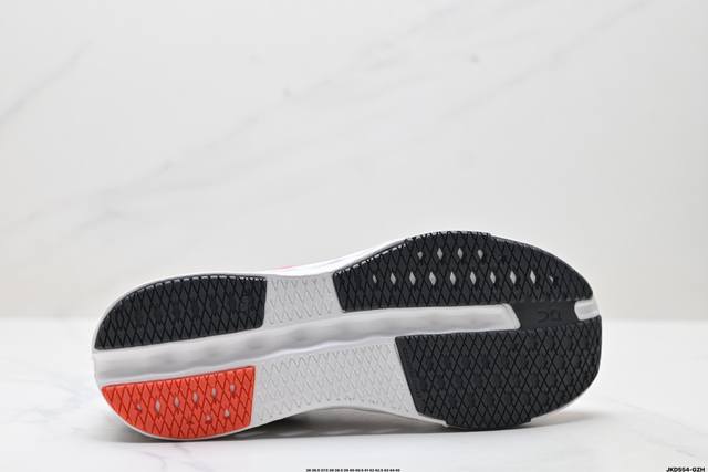 Cloudsurfer Next鞋身外观的设计灵感源于 On 昂跑的专业竞赛鞋 鞋面采用工程编织材料打造 提供无缝贴合的穿着体验 轻盈透气的鞋面贴合脚部 确保舒适的穿着感与稳定的锁定效果 鞋底经过升级的橡胶垫片在干湿条件下均提供高抓地力和耐用性
