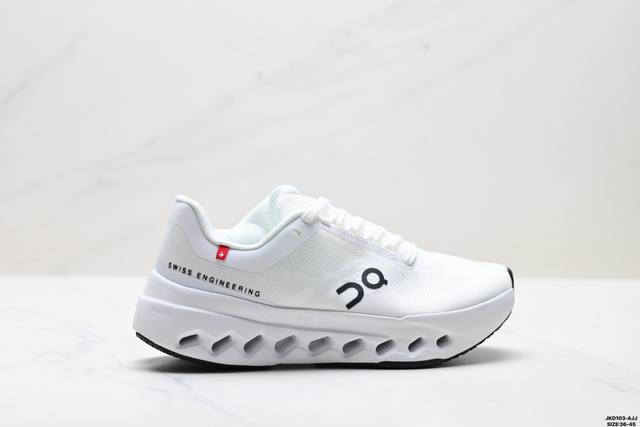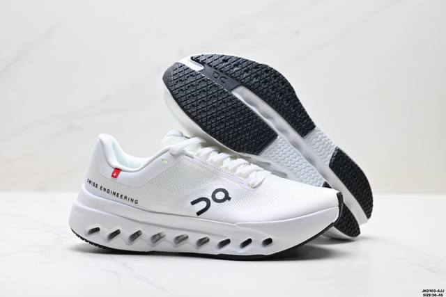 公司级On昂跑 Cloudsurfer Next 舒适百搭 简约 耐磨 低帮跑步鞋 DDD Cloudsurfer Next鞋身外观的设计灵感源于 On 昂跑的专业竞赛鞋 鞋面采用工程编织材料打造 提供无缝贴合的穿着体验 轻盈透气的鞋面贴合脚部 确保舒适的穿着感与稳定的锁定效果 鞋底经过升级的橡胶垫片在干湿条件下均提供高抓地力和耐用性 DDD 尺码:36-45 DDD Id:Jkd103-Ajj DDD