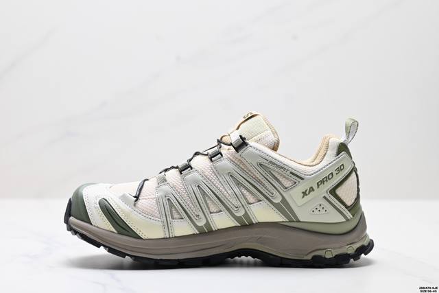 公司级Salomon Xa Pro 3D Suede 萨洛蒙户外越野跑鞋 鞋面采用Sensifit贴合技术 全方位贴合包裹脚型 鞋跟部鞋底牵引设计 提供强大的抓地性能 更适应野外崎岖不平的道路 其3D Advanced Chassis底盘 材料轻量大化 钉齿设计更具稳定性、防护性 鞋底易磨损区运用Contagrip高耐磨材料 应对城市硬质路面长距离跑考验