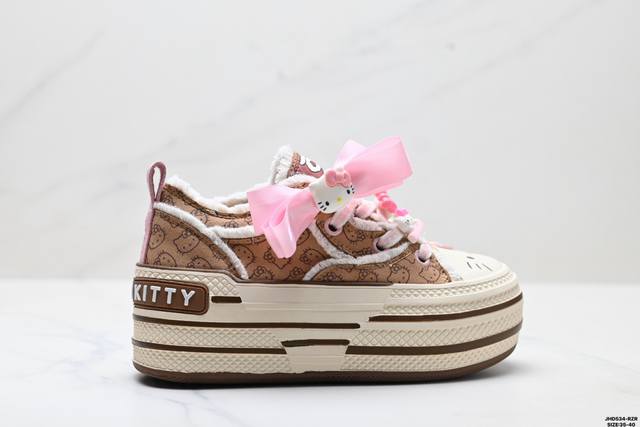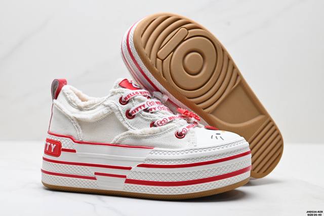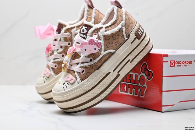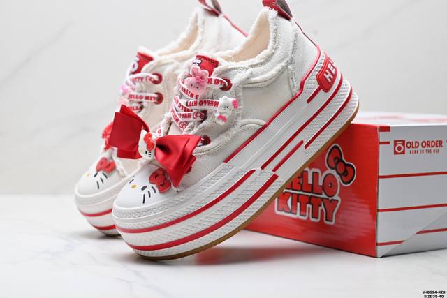 公司级Sanrio 三丽鸥 X Old Order 联名限定 凯蒂粉蓝 马卡龙 厚底增高帆布鞋