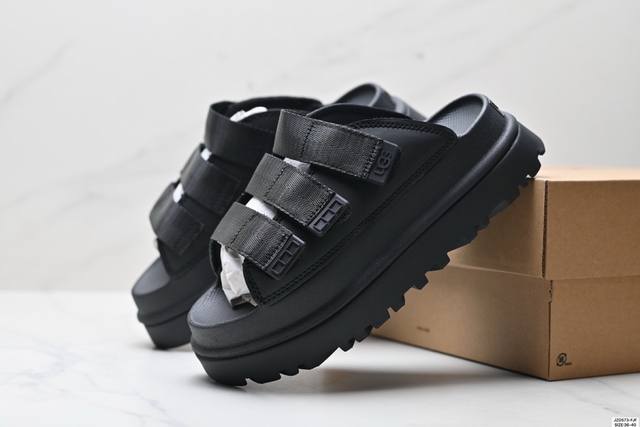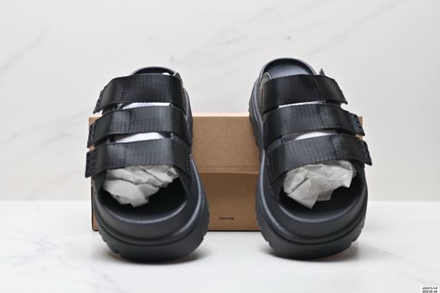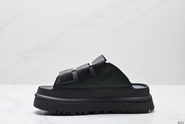 公司级Ugg夏季新款女同款炫金系列厚底魔术贴休闲拖鞋明星同款 超轻的一款鞋子 魔术贴搭扣根据脚型随意调节 厚底设计时尚又增高 尺码:36-40 Ld:Jzd57