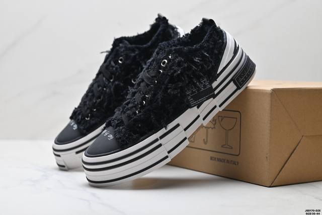 公司级Xvessel 天鹅之曜 长毛绒亮片 吴建豪低帮 帆布鞋 重工解构厚底软木百搭乞丐风增高板鞋古法手工艺与皮鞋工艺完美结合制造 世界上第一双软木酥化鞋 破坏效果突出 原盒包装 原版双层软木大底 货号:S19X001B 尺码:35-44 Id:Jsd170-Dze
