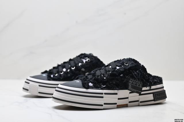 公司级Xvessel 天鹅之曜 长毛绒亮片 吴建豪 一脚蹬 半拖低帮帆布鞋 重工解构厚底软木百搭乞丐风增高板鞋古法手工艺与皮鞋工艺完美结合制造 世界上第一双软木酥化鞋 破坏效果突出 原盒包装 原版双层软木大底 货号:S19X001B 尺码:35-40 Id:Jsd170-Dze