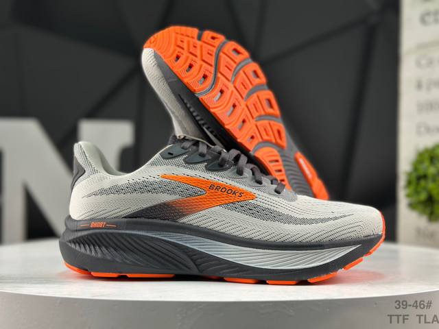 布鲁克斯Brooks Ghost 幽灵 17 经典鞋款厚底**运动老爹鞋 DDD Max 坐垫 搭载 Dna Loft V3 氮气超临界发泡中底,前掌厚度 26Mm、后跟 36Mm,配合 10Mm 坡差设计,实现软弹平衡。氮气注入形成密闭气囊结构,缓震性能提升 30%,能量回馈效率较前代提升 10%。实测显示,80Kg 跑者后跟触地可吸收 68% 冲击力,前掌蹬伸时回弹速度提升 15%。 采用双层提花工程网布,外层高密度透气网孔快速排汗,内层弹性支撑框架增强包裹性。前掌加宽 5Mm 楦型设计,搭配加厚记忆