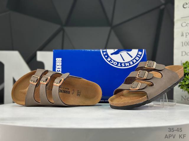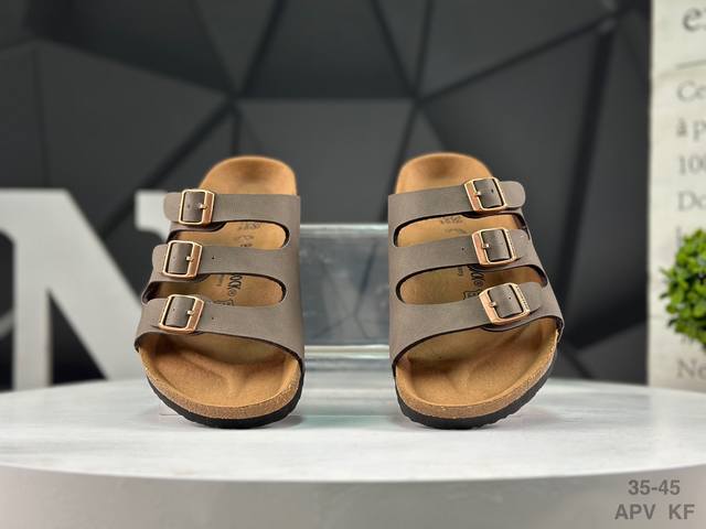 德国百年知名鞋履品牌 博肯Birkenstock 勃肯半拖凉鞋系列 拖鞋 广东原产#采用质地柔软牛皮革 中底搭载缓震软木橡胶 DDD 外置Eva轻量片装外底 DDD Size:35~45 Apv Kf DDD
