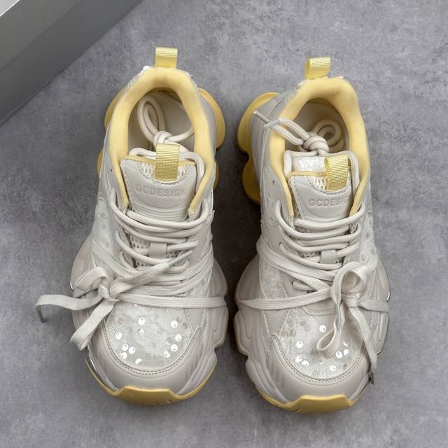 新货Gg-Cc 林允同款 5Cm厚底增高 星河粒子 月牙底绑带镂空老爹鞋