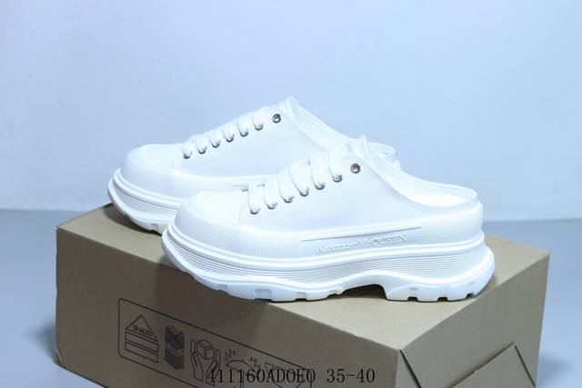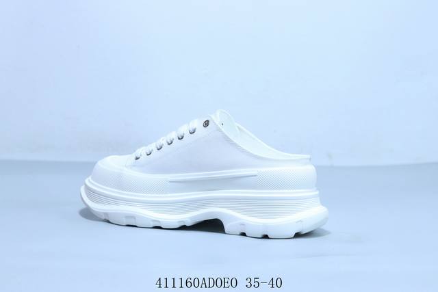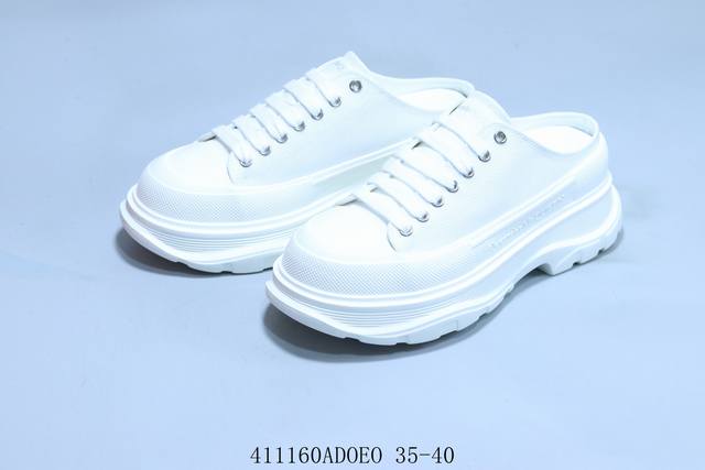 Alexandermcqueen 亚历山大 麦昆Mcq 情侣款运动小白鞋厚底增高闪尾光滑牛皮平底鞋休闲鞋 时尚男女板鞋潮运动鞋 半托