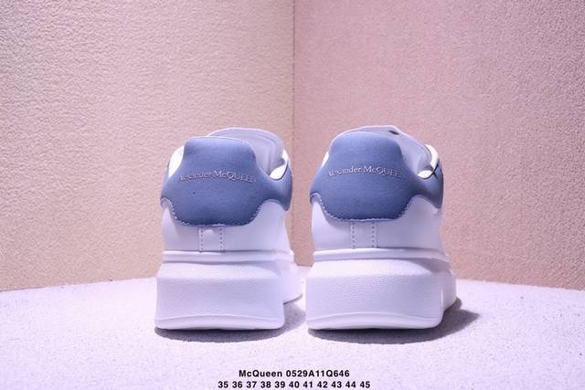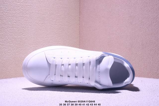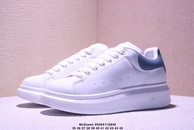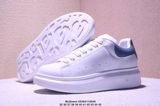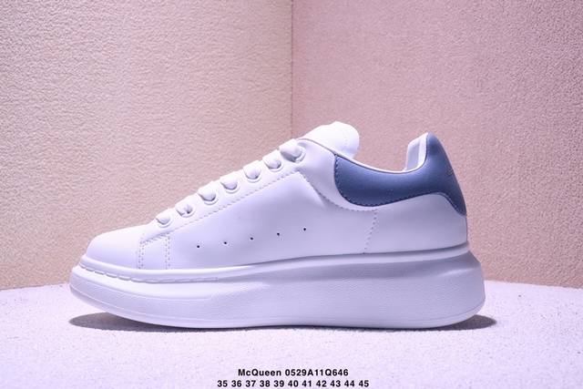福利特价海外指定版本 独特礼盒包装 Alexander Mcqueen 亚历山大麦昆松糕鞋厚底增高小白鞋 进口丝绸亚光原版正品 水染羊皮内里 牛皮垫脚 回弹度到位 耐磨又舒适 鞋底厚4.5Cm 全套原版包装 配件齐全 官方一致 凹凸定制正品原盒包装 右脚鞋舌嵌入防伪芯片装置 外盒鞋标官方二维码扫码+防伪芯片 尺码 35-45
