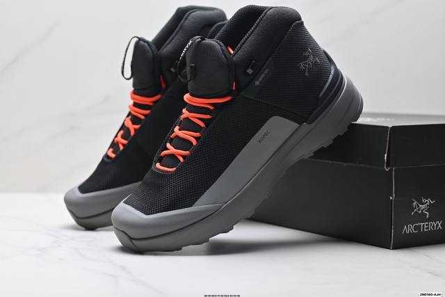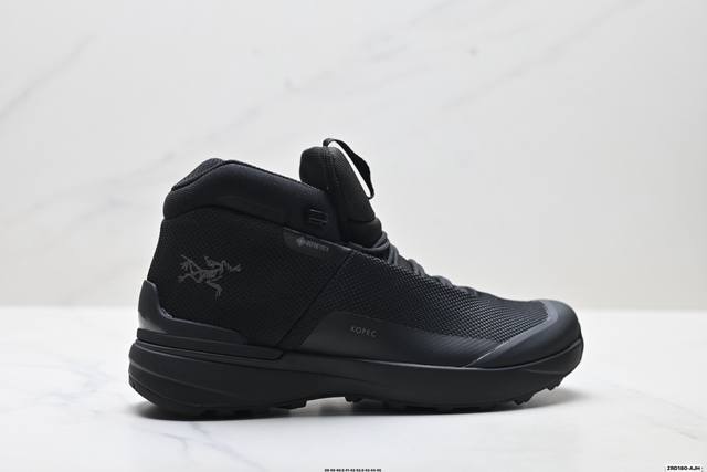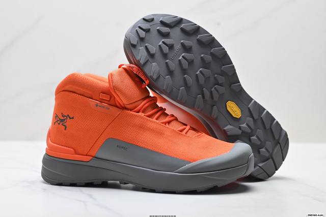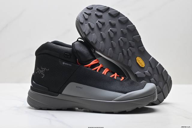 纯原Arcteryx始祖鸟 Kopec Mid Gtx 覆盖防水 中帮户外登山徒步鞋 DDD 特有的独立衬垫 穿着更合脚 带有Gore-Tex防水内衬 提供透气性和防风雨性能 同时内靴带有橡胶平底 与外靴分离后可单独作为营地鞋使用 鞋面为无缝层压拼接的4层结构 兼顾耐久和轻量 并提供足够的透气性 中底使用轻量的Eva泡沫制成 轻量柔软具有弹性 并吸收脚部作用力 Bora系列的Vibram大底通过不同模块的组合 使其具备了较好的支撑性和抓地力 在脚跟部位特别设计了Y型突起结构 稳定脚部动作 提升制动功能 适
