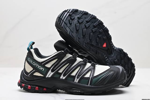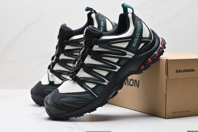 公司级Salomon Xa Pro 3D 萨洛蒙户外越野跑鞋 鞋面采用Sensifit贴合技术 全方位贴合包裹脚型 鞋跟部鞋底牵引设计 提供强大的抓地性能 更适应野外崎岖不平的道路 其3D Advanced Chassis底盘 材料轻量大化 钉齿设计更具稳定性、防护性 鞋底易磨损区运用Contagrip高耐磨材料 应对城市硬质路面长距离跑考验