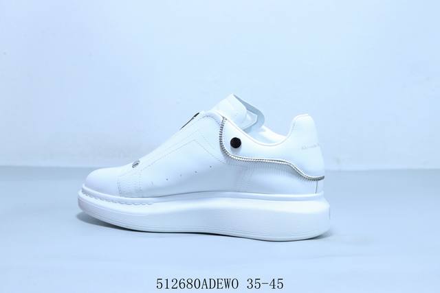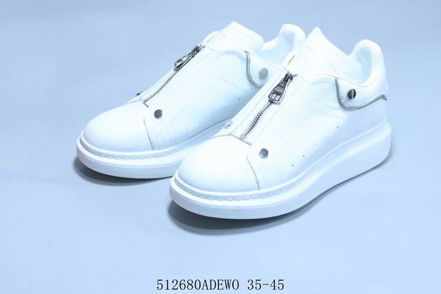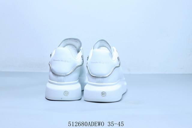 alexandermcqueen 亚历山大 麦昆Mcq 情侣款运动小白鞋厚底增高闪尾光滑牛皮平底鞋休闲鞋 时尚男女板鞋潮运动鞋 512680Adewo 35-4