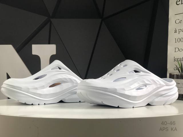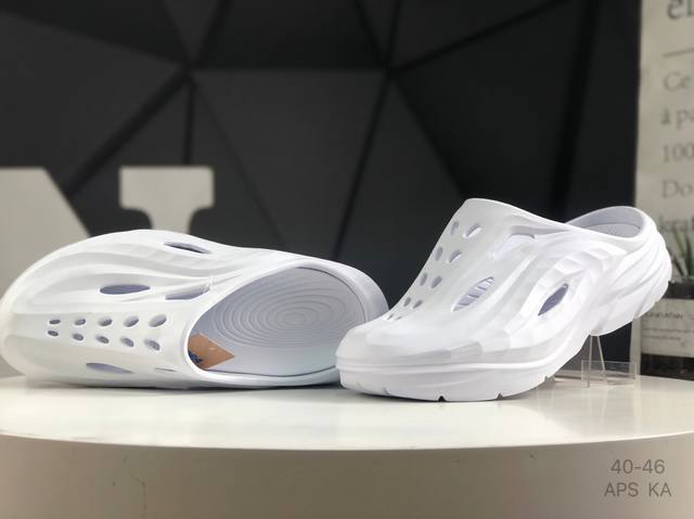 hoka One One夏奥拉Mule户外缓震 拖鞋 流线型融合极简美学,包头鞋面,对脚掌有更好的包裹性,也满足防碰撞的功能性。鞋面多处开孔的气流通道,有助于空