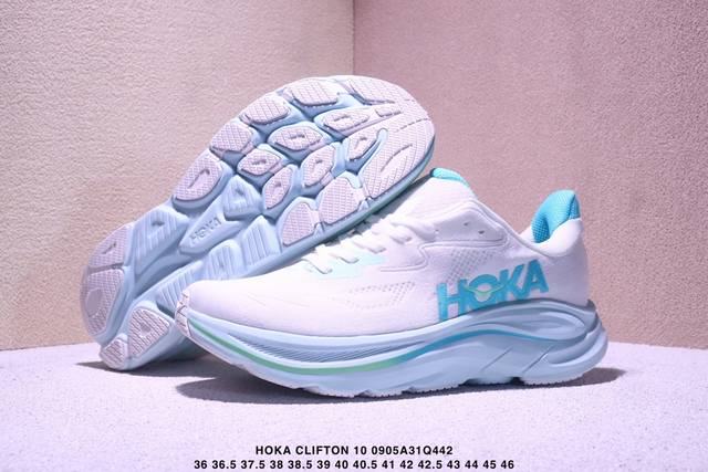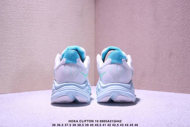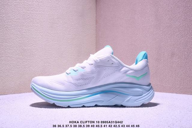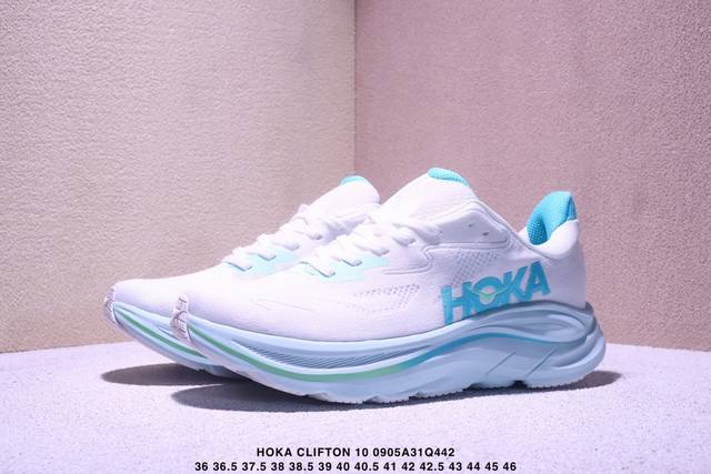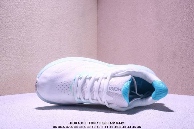 / Hoka One One Clifton 10 时尚舒适耐磨透气 低帮 训练长跑短跑跑步鞋 女款 白蓝 Xm0905Q442