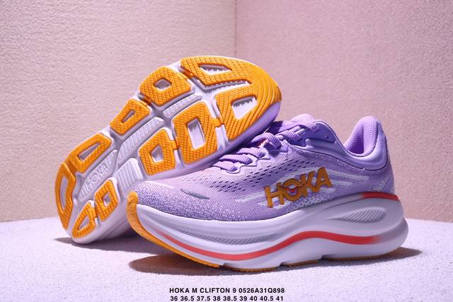 hoka One One M Clifton 9 机能缓震跑鞋 美国新兴跑鞋品牌 鞋面部分采用工程网眼面料 可以确保必要的透气性能 货号 1127895 尺码