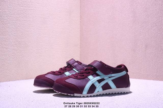 Onitsuka Tiger鬼塚虎 Mexico 66 Kids 舒适时尚运动 防滑耐磨 低帮 儿童休闲鞋 深红色 蓝色 儿童款 Xm0929Q222