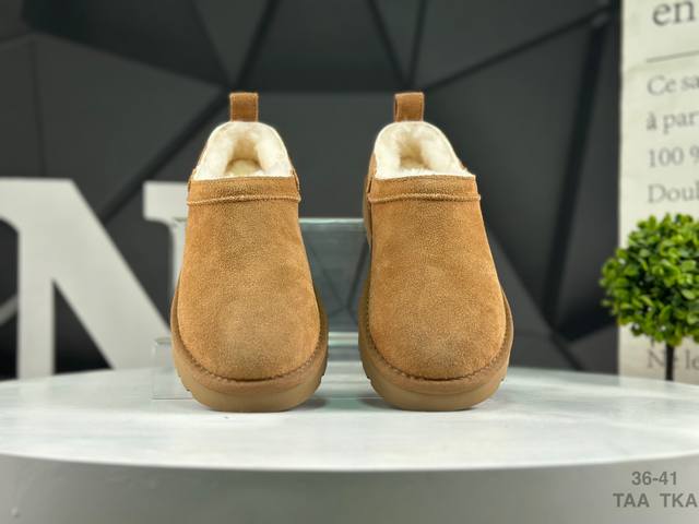Ugg 棉拖 雪地靴 俏皮可爱的百变造型, 美国轻奢品牌Ugg 平底系列冬季羊毛一体雪地休闲保暖毛毛家居包头棉拖鞋。官方同步包装 检验标 材料采用原厂防污防水皮料 防滑耐磨轻翼大底 潮流百搭 英伦风 舒适拖鞋 秋冬休闲厚底时尚男女鞋 保暖性能十足 严寒季节保暖神器。 货号:W1173891 Jaa