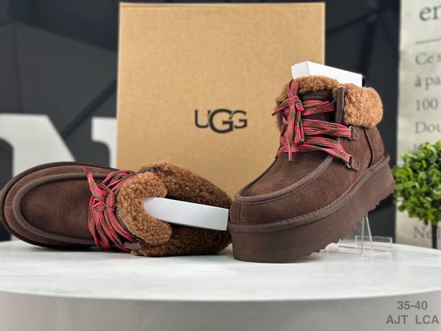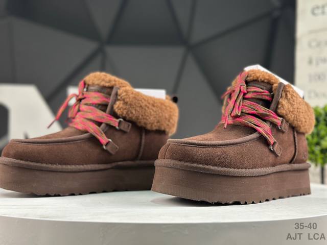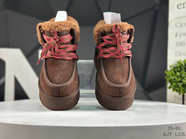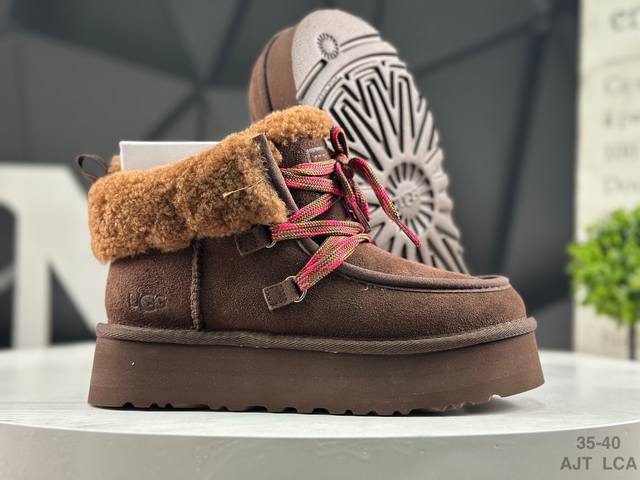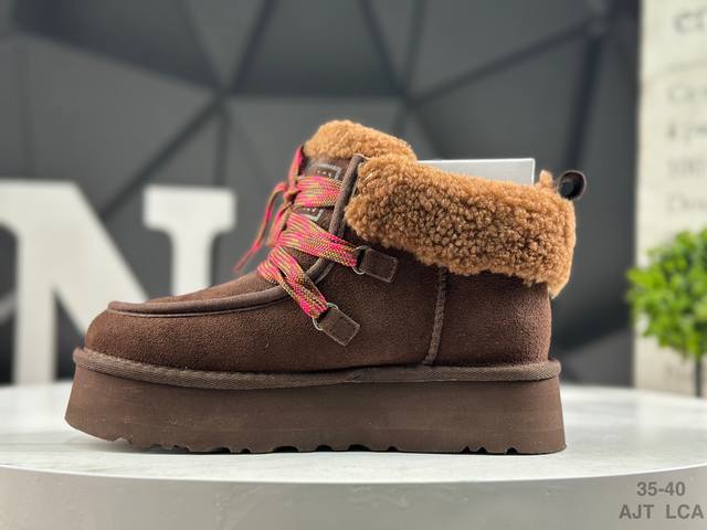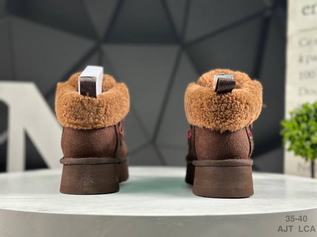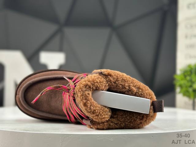 Ugg Classic Mini Ii 芙卡拉系带经典加厚款松糕迷你短靴栗色 #采用Tpu模压定型翻毛皮鞋面材质 内嵌人造卷曲羊毛毛绒里衬和鞋垫 保暖锁热 加厚