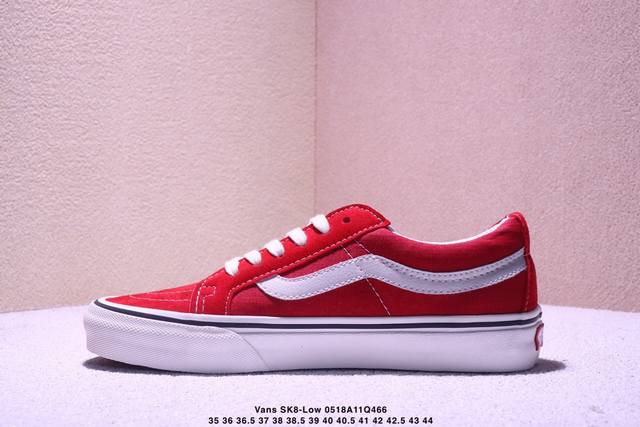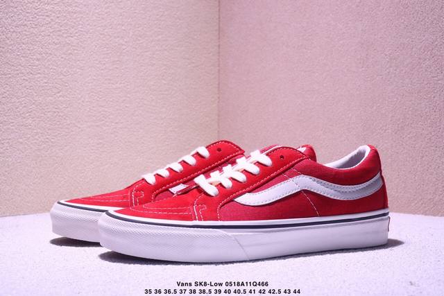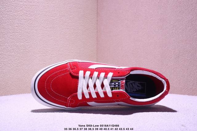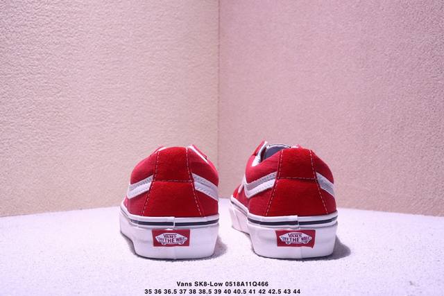 该鞋款以白线勾勒出整体造型效果 亚光面打造整体鞋身 以Sk8-Low鞋身为蓝本 大红的风格极具辨识度 上脚凸显穿搭功力