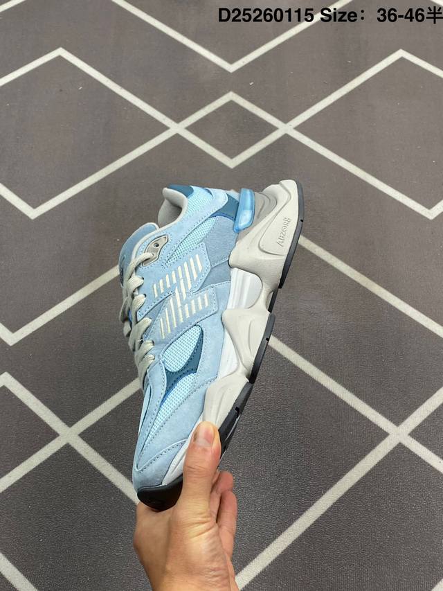 鞋款灵感源自设计师本人对夏日的怀日回忆。鞋面大身由空间双格及磨砂鞋面拼接而生,夏日氛围拉满#采用大面积网眼以及麂皮材质覆盖鞋身,还原经典气质。搭载Abzorb避震科技,由泡沫聚酯制成,上脚可以有效减少由鞋底反弹对身体及双腿的冲击力