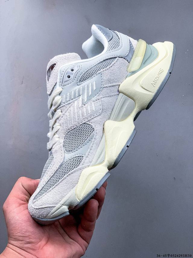 new Balance 又带来了新鞋型 9060 并且是与芝加哥街头品牌 Joe Freshgoods 的联名款 鞋身主体采用了类似 990 系列的设计风格 与传统复古慢跑鞋区别不大 最大的变化就是鞋底部分 在传统设计的中底外层 增加了多个分区的模块 圆润的线条设计与我们熟悉的 New Balance 风格截然不同 但与同样充满弧形线条的鞋面搭配 看起来毫无违和感