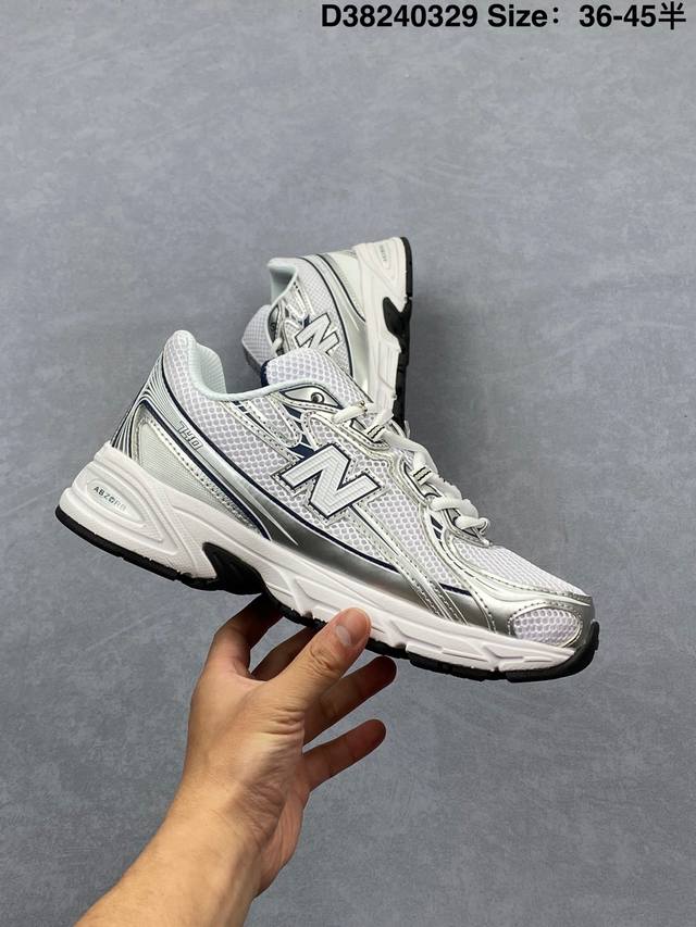 New Balance Mr740 Nb新百伦系列复古老爹风休闲运动慢跑鞋。采用轻质牛剖革拼接透气网眼衬垫织物鞋面材质 T-Beam大底提供足步弓支撑 保持步态稳定,后跟搭载外露缓震胶,鞋身整体以各种深浅不一的灰色覆盖 鞋头以淡蓝色调装饰,网眼衬垫通过不规律的色块实现做旧的美感 泛黄的鞋底更是进一步增添了复古气息。