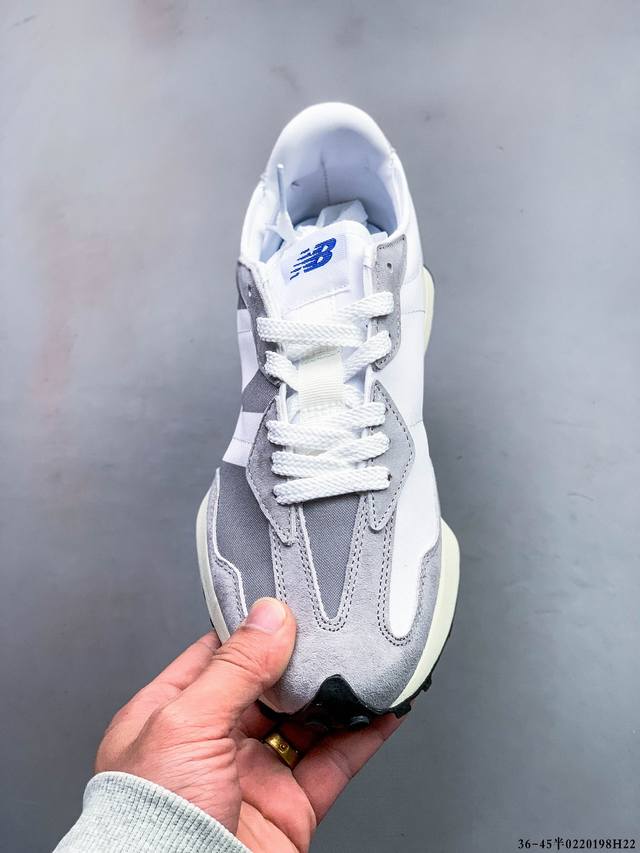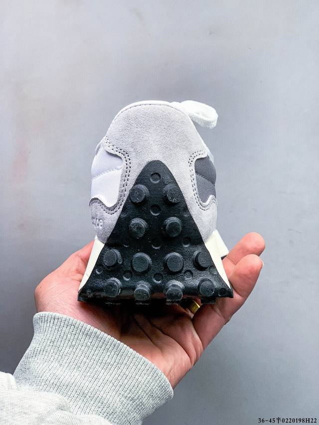 New Balance Ms327系列复古休闲运动慢跑鞋 原鞋打版 细节完美 采用尼龙及猪巴革麂皮物料拼接构成#中底高弹Pu材质及满丁防滑橡胶外底上世纪 70 年代的意大利街头风格Nb新百伦 全新 New Balance 327 系列,以更纯粹的复古风格设计打造的全新造型。侧身还以解构26设计,将 N 字标志以做旧压花样式呈现,样式别具新意。而麂皮、冲孔皮革的塑造,则呈现出高级怀旧气质,也让鞋款在奢华时装风格与运动氛围之间达到了平衡