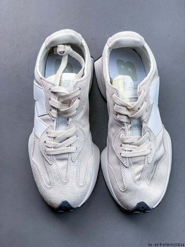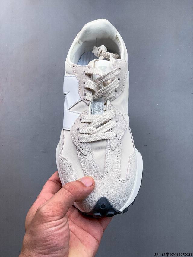 New Balance Ms327系列复古休闲运动慢跑鞋 原鞋打版 细节完美 采用尼龙及猪巴革麂皮物料拼接构成#中底高弹Pu材质及满丁防滑橡胶外底上世纪 70 年代的意大利街头风格Nb新百伦 全新 New Balance 327 系列,以更纯粹的复古风格设计打造的全新造型。侧身还以解构26设计,将 N 字标志以做旧压花样式呈现,样式别具新意。而麂皮、冲孔皮革的塑造,则呈现出高级怀旧气质,也让鞋款在奢华时装风格与运动氛围之间达到了平衡