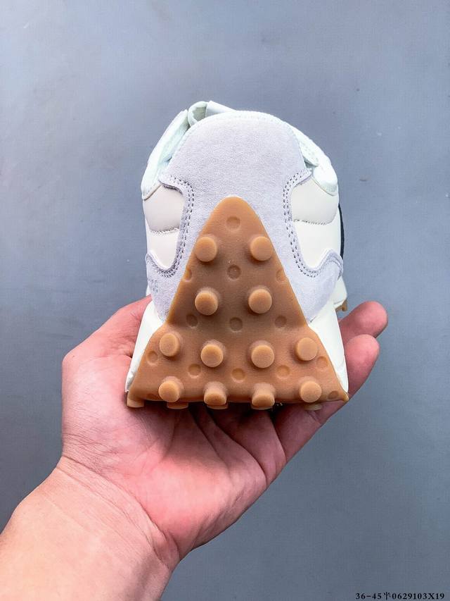 New Balance Ms327系列复古休闲运动慢跑鞋 原鞋打版 细节完美 采用尼龙及猪巴革麂皮物料拼接构成#中底高弹Pu材质及满丁防滑橡胶外底上世纪 70 年代的意大利街头风格Nb新百伦 全新 New Balance 327 系列,以更纯粹的复古风格设计打造的全新造型。侧身还以解构26设计,将 N 字标志以做旧压花样式呈现,样式别具新意。而麂皮、冲孔皮革的塑造,则呈现出高级怀旧气质,也让鞋款在奢华时装风格与运动氛围之间达到了平衡
