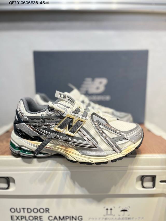 #采用轻质牛剖革拼接透气网眼衬垫织物鞋面材质 T-Beam大底提供足步弓支撑,保持步态稳定 后跟搭载外露缓震胶M1906Ad Qe7010606#36-45半