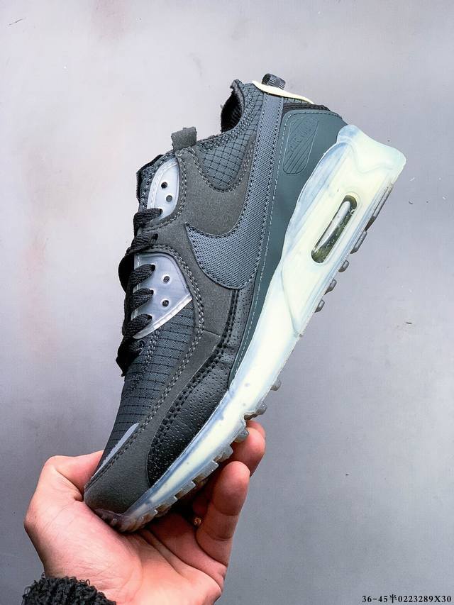 全新组合大底#原楦原纸版开发版型#正确3层组合超轻Eva泡绵中底+Air缓震气垫+耐磨橡胶外底材质超丰富的户外为灵感设计,耐克Nike Air Max Terrascape 90 Sail Black 山川地形系列经典复古百搭休闲运动气垫慢跑鞋